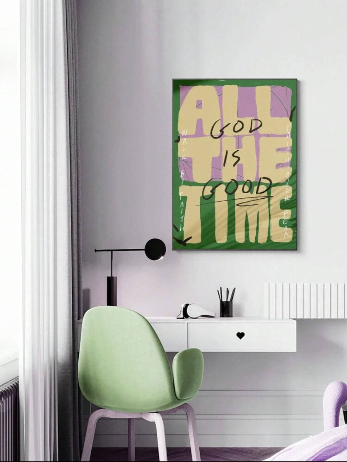 Infuse your space with faith and positivity with the "God Is Good - All the Time Canvas." This bold and uplifting artwork features vibrant colors and a powerful message that serves as a daily reminder of God's unwavering goodness. Perfect for creating a focal point in any room, this canvas blends contemporary design with timeless spiritual truth.